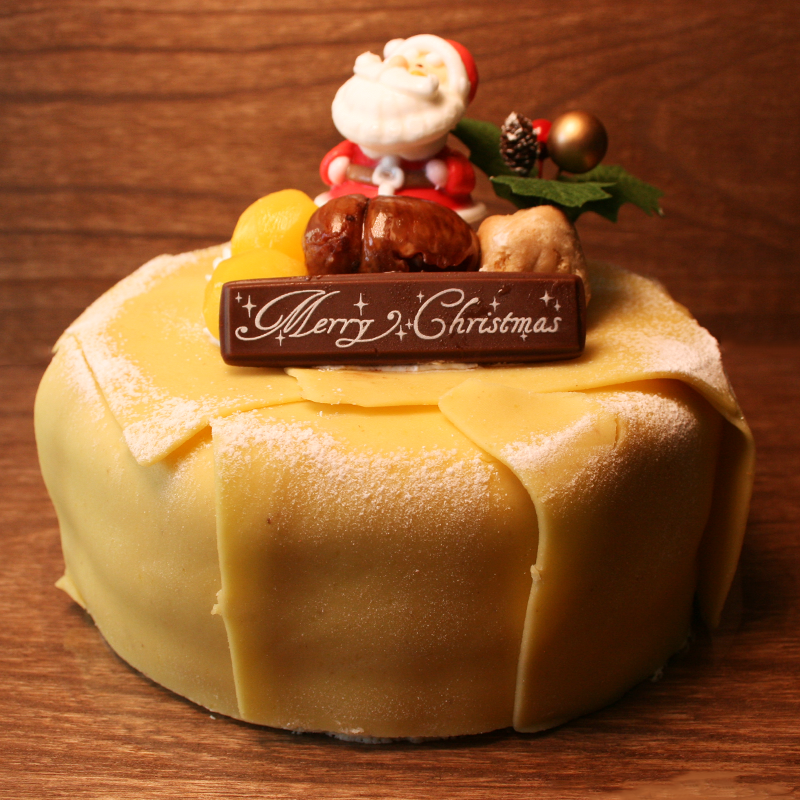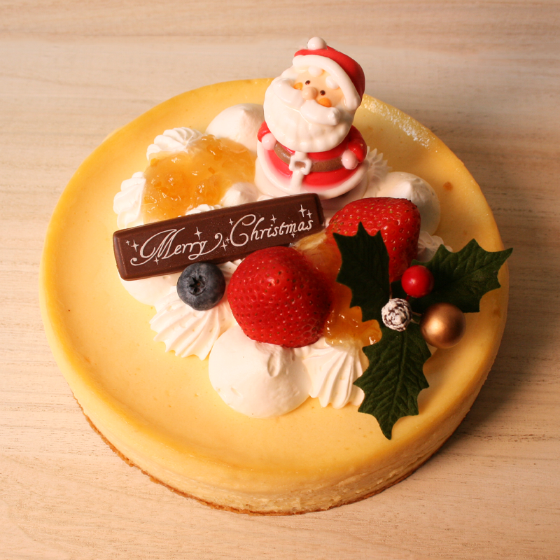 昨年はラインナップになかったニューヨークチーズケーキ、今年はサンタが乗って登場。 絞り型の違う生クリームは降り積もった雪のようで、ゆずのジャムや苺と共に、ちょっぴり寂しいチーズケーキの表面を楽しく鮮やかに飾ります。甘すぎない菓樹オリジナル生クリームは、チーズケーキとも相性抜群です。 菓樹のニューヨークチーズケーキは、その濃厚さと、とろけるような口どけがイチオシ。濃厚なのにくどいことはなく、クリスマスのお食事のあとにも存分にお楽しみいただける逸品です。