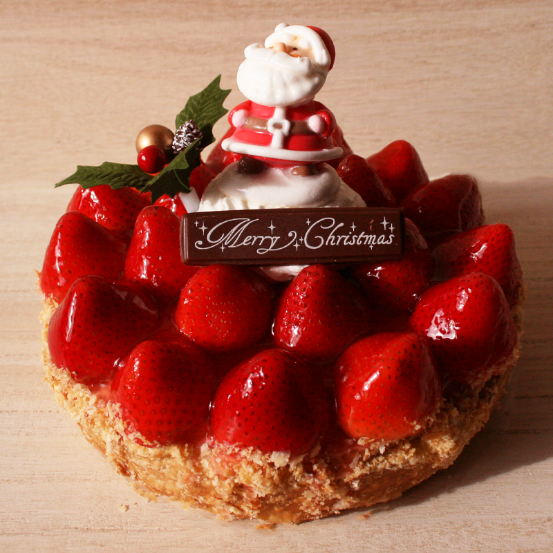 毎年必ず購入を決めているお客様が非常に多く、苺の季節以外にも販売してほしいというお声も絶えない、苺ケーキの皇帝「ナポレオン」。 熊本生まれの「ゆうべに」を、零れ落ちんばかりにたっぷり乗せました。ひとつひとつが大粒の苺は、噛んだ瞬間に果汁がじゅわっとあふれ、苺の甘みが口の中をあっという間に支配してしまいます。 土台のパイは、バターを贅沢に使い極上の香りとサクサクした食感。その名の通り頂点にふさわしい味わいと華やかなデザインで、聖なる夜の食卓に華を添えてくれます。