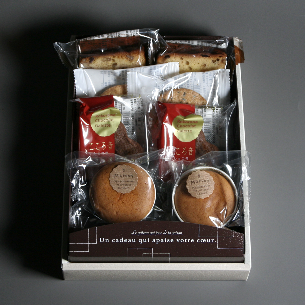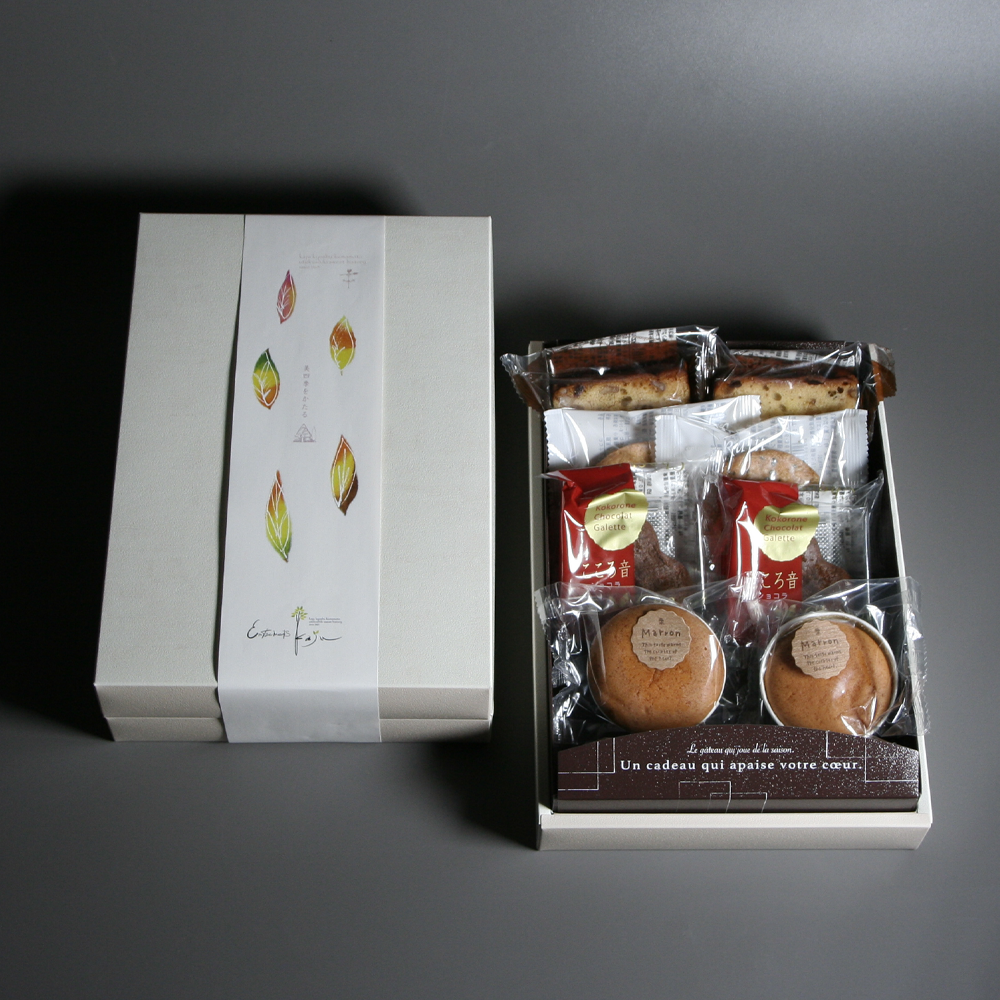 秋の風を運んでくれる「アルザス」「マロンケーキ」、菓樹といえばの「ふろらんたん」「こころ音ショコラ」など、人気の焼菓子を詰め合わせた10個入りのギフトセット。