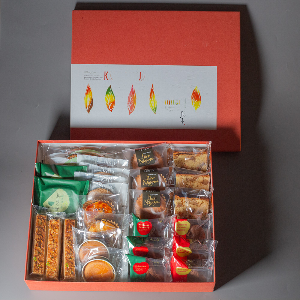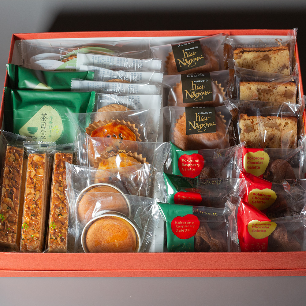秋の風を運んでくれる「アルザス」「マロンケーキ」「西原スイートポテト」、菓樹といえばの「ふろらんたん」「こころ音ショコラ」など、人気の焼菓子を詰め合わせた20個入りのギフトセット。